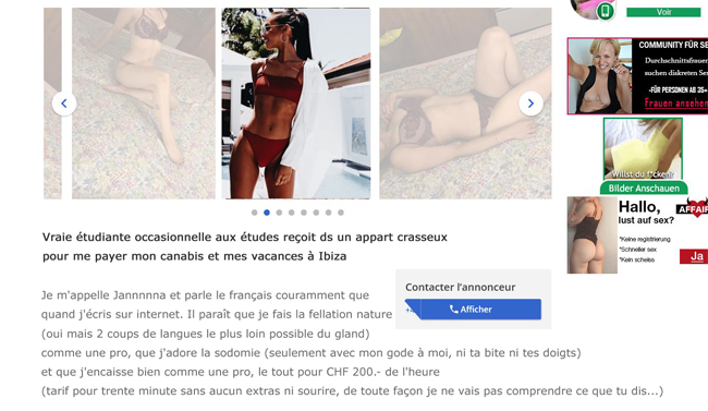 Une « mère de famille » suissesse qui recevrait des inconnus d’un site de rencontre (voisins en plus) en journée